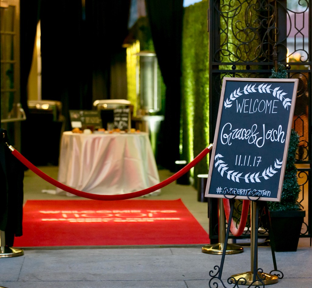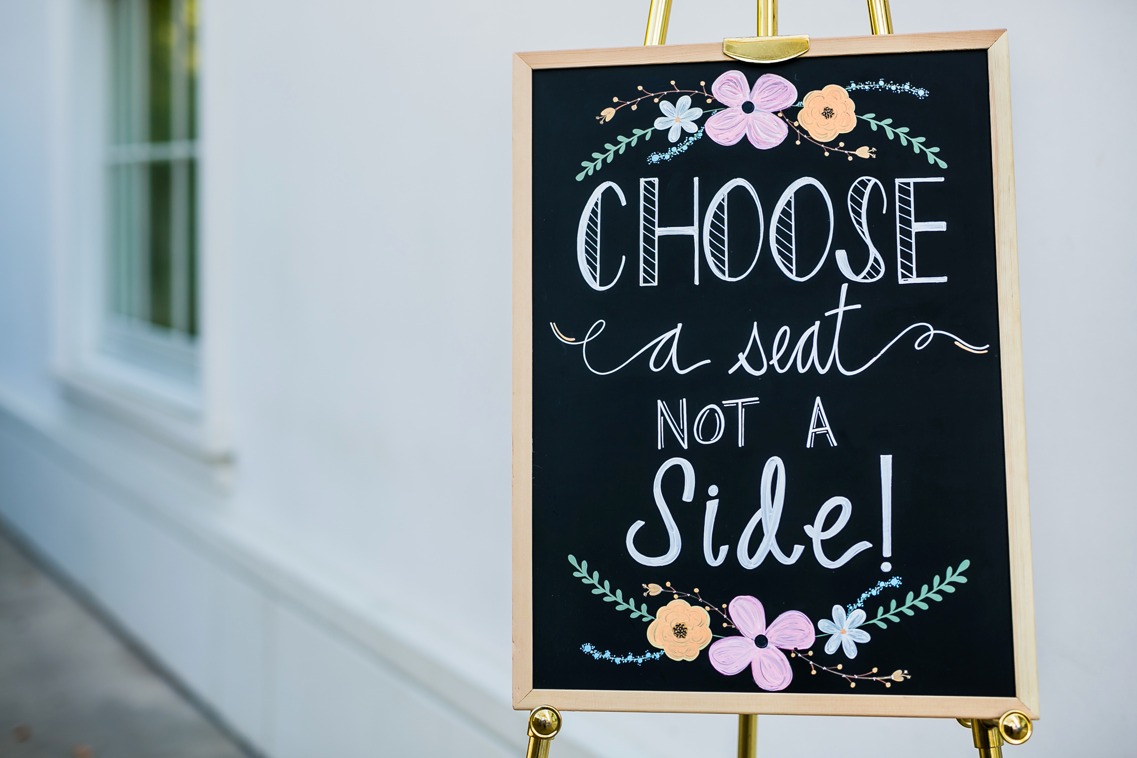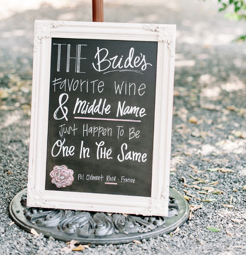I made this welcome drink sign for my college roommate’s Napa Valley wedding back in 2016 along with a variety of other pieces. I bought the chalkboard years prior and was excited to finally use it. The vintage style frame matched the romantic vibe of her black tie, vineyard celebration just perfectly. My favorite thing about this sign though is that I also wrote the content which made it extra original, very personal, and such a fun way to greet guests. It’s a great reminder that unique adages specific to the couple are just as memorable as fancy lettering if your goal is to create one-of-a-kind wedding signage.