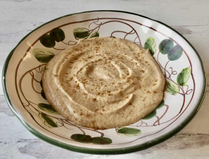 Once the eggplant puree is seasoned to your liking, smooth the baba ghanoush with the back of a tablespoon, garnish with a few drizzles of extra virgin olive oil and a sprinkling of cumin. And feel free to adorn your baba ghanoush with any other spices, nuts, pepper, olives, and/or seeds that you’d like. I, obviously, kept it simple the day I made this dip. Oh no – I just realized that I took this photo before I drizzled the olive oil onto it- so sorry folks. Just envision a nice swirl of EVOO on this delicious bowl of baba ghanoush.