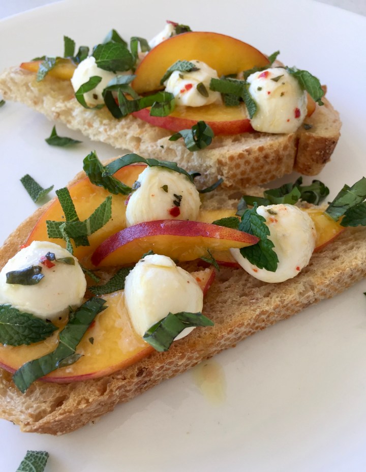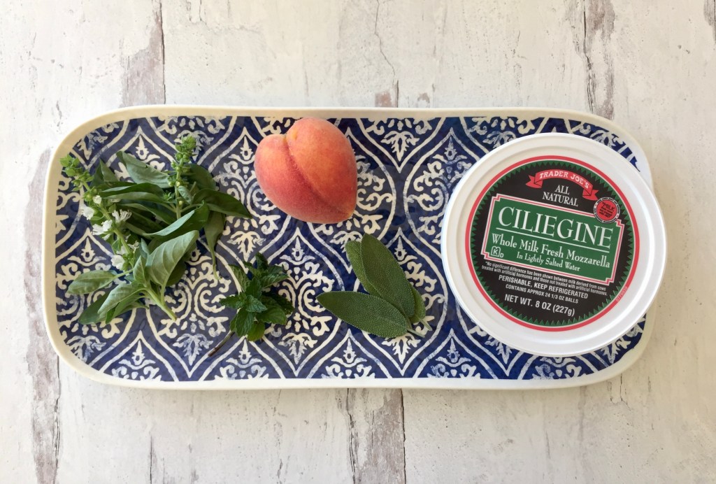I had a deep craving for caprese a few weeks ago so I went into my garden to pick some cherry tomatoes and basil. Unfortunately, the tomatoes weren’t as ripe as I would have liked so I left them on the vine. With caprese still on the brain, I had to pivot. To my luck, I quickly remembered that I had a fresh, juicy peach in the kitchen. I had never made caprese with peaches before but knew the pairing would be delicious. With a new game plan, I picked some fresh mint and sage to go with the basil and headed back inside to whip up lunch.
