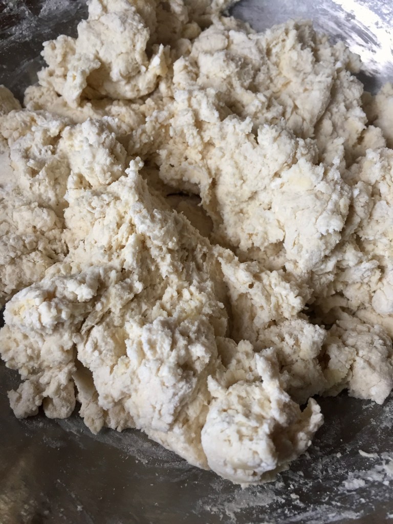 QUICK TIP: If you don’t want to get your hands dirty – you can use the pulse feature on a food processor. You can also use a large serving fork or a pastry blender (if you’re an avid baker) to break up the butter and cream cheese. I chose the fork method when I made this particular batch of biscuits. I’ve used various mixing methods over the years and find that my biscuits always come out fluffy and flaky regardless. At the end of the day, choose whatever tool works best for you.