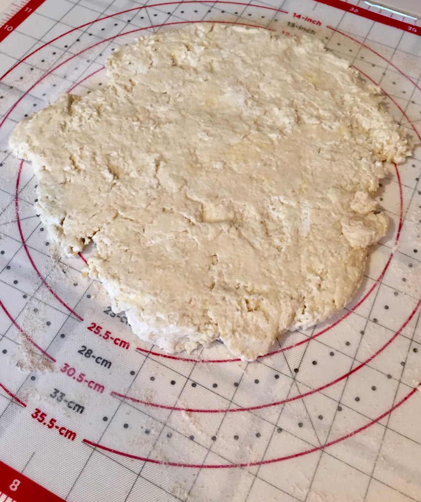 Once the dough is on the floured surface, it’s time to roll. The instructions say to roll out the dough until it’s 1 to 2 inches thick. I decided to roll my dough to about 1 inch thick in order to achieve a wider biscuit.