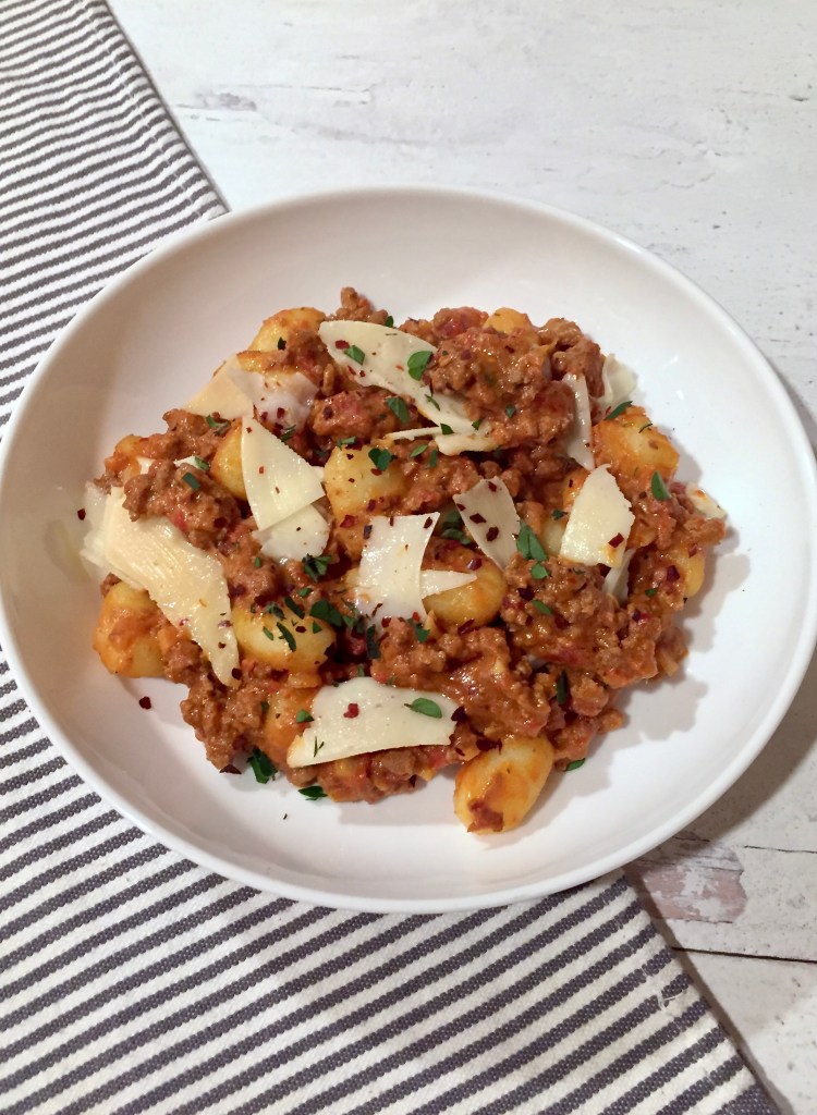 I make this hearty, meat sauce at least three times a month and typically serve it with pappardelle or gnocchi. I almost always use grass-fed ground beef but have also prepared this exact recipe with ground turkey, chicken, and pork on various occasions. It’s a favorite in my household and a hit amongst dinner guests which is why I figured it was about time that I share my easy Ragù alla Bolognese recipe for all to enjoy.
