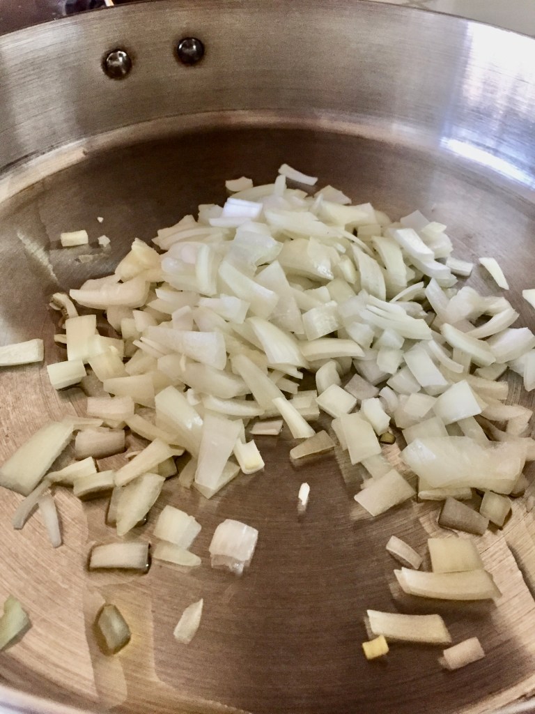 Dice up your onion, and sauté over medium heat until they are translucent.