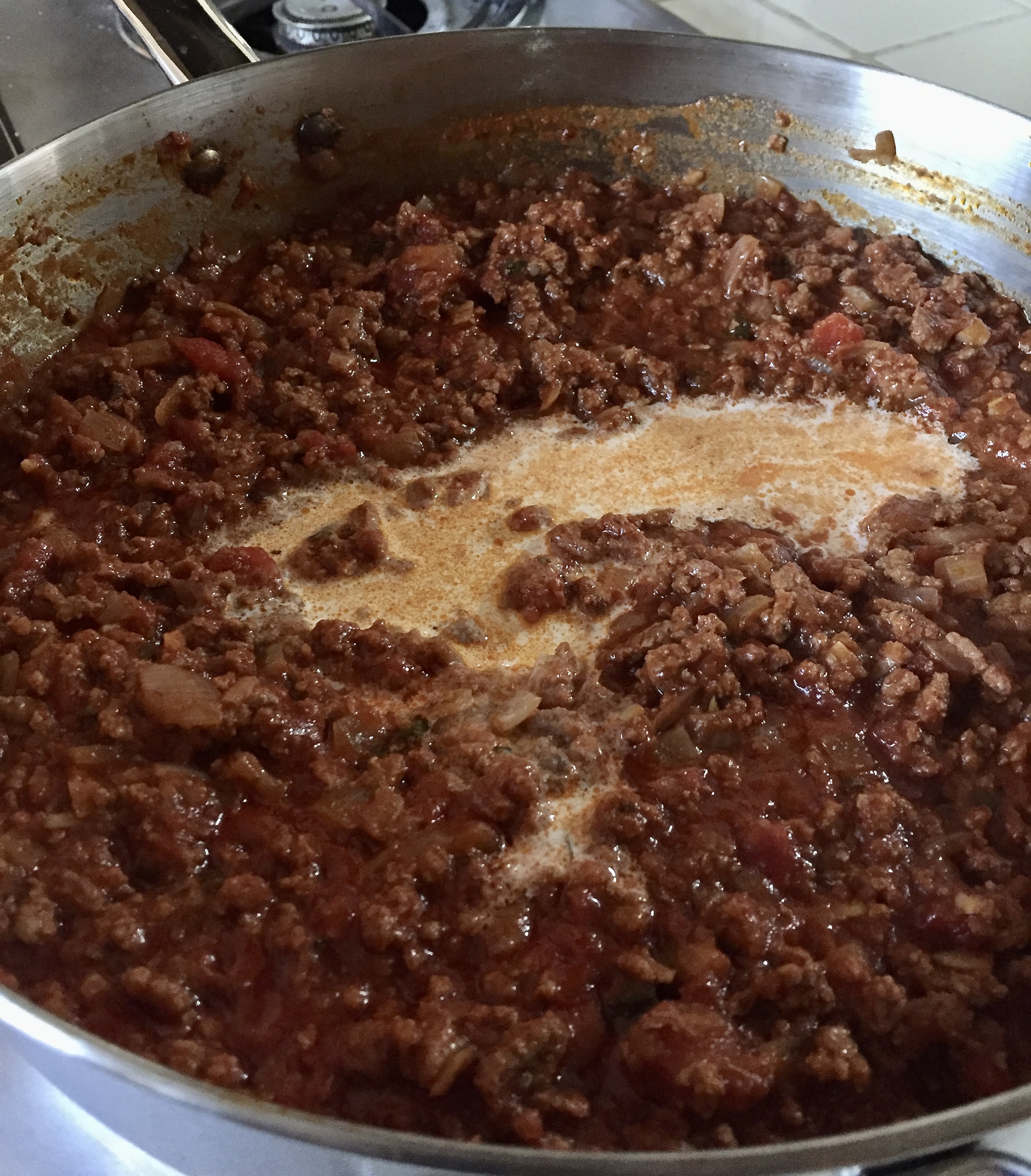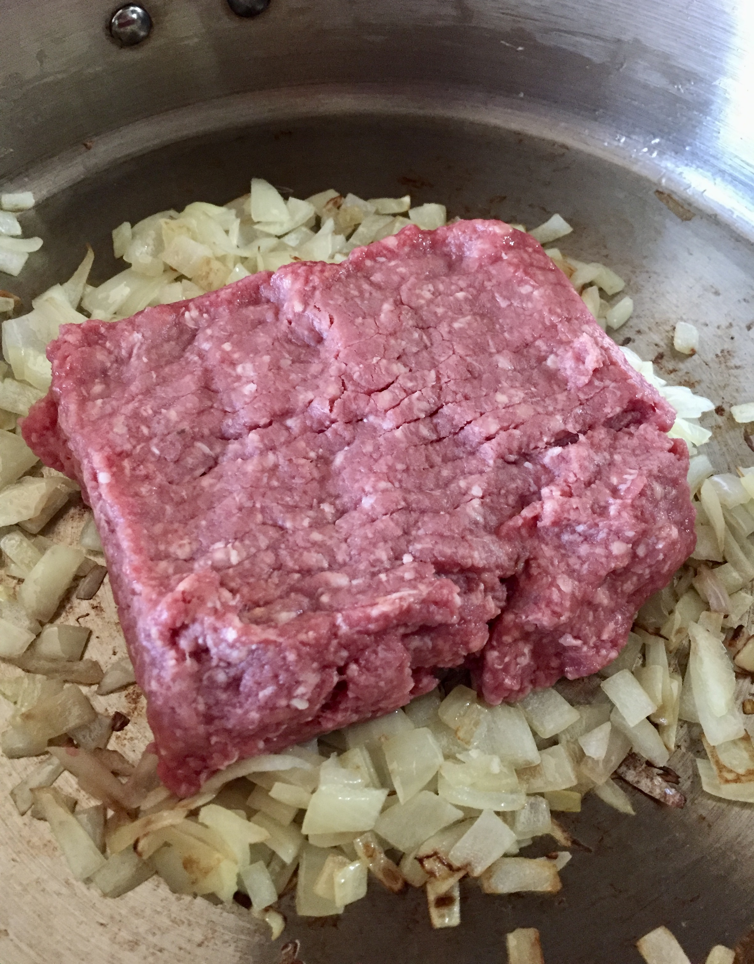 Stir well to incorporate both of these ingredients into the meat, spices, and onions.