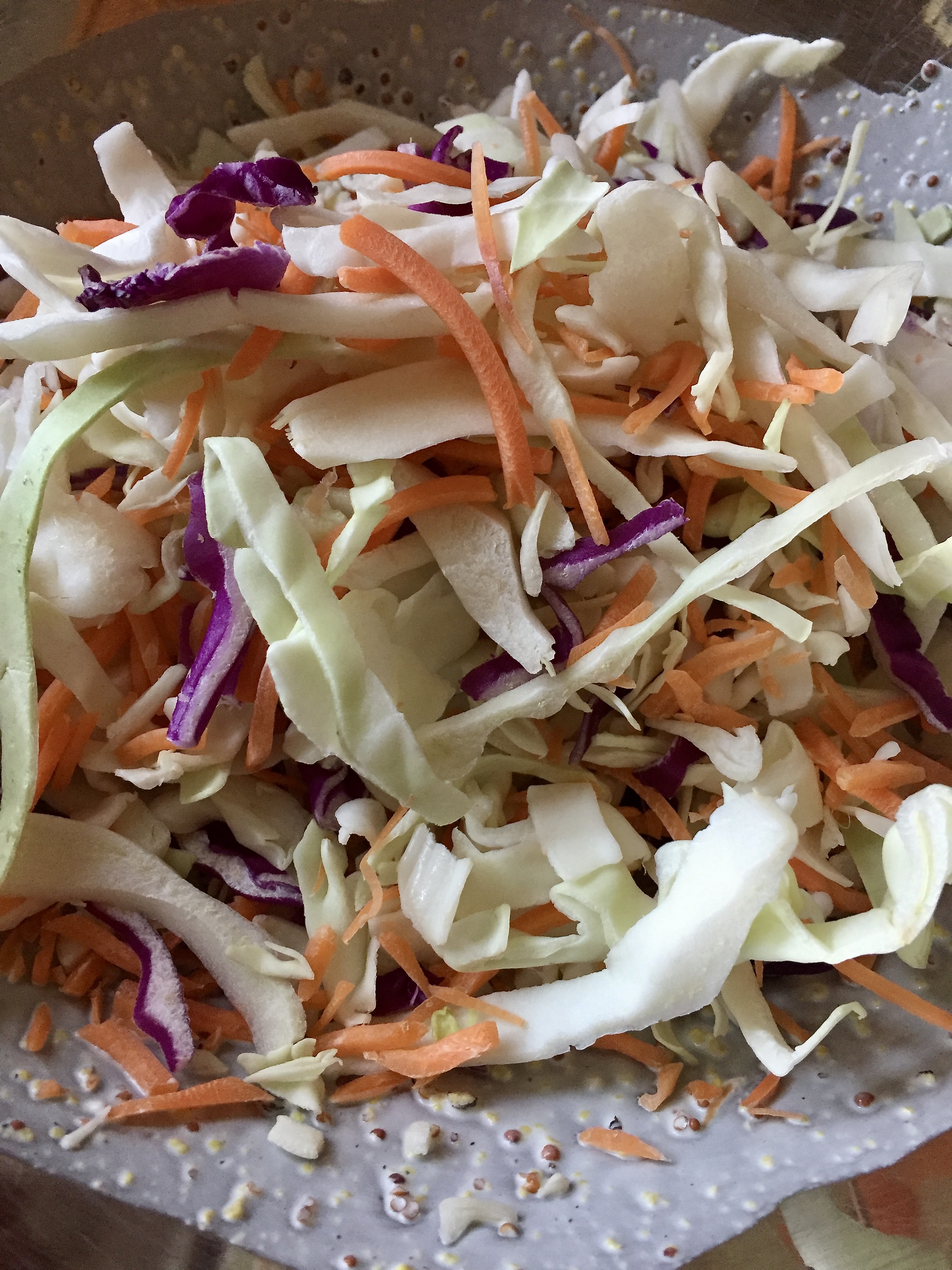 NOTE: Please feel free to shred or finely slice your own purple cabbage, green cabbage, & carrots instead of using a pre-packaged bag of veggies.
