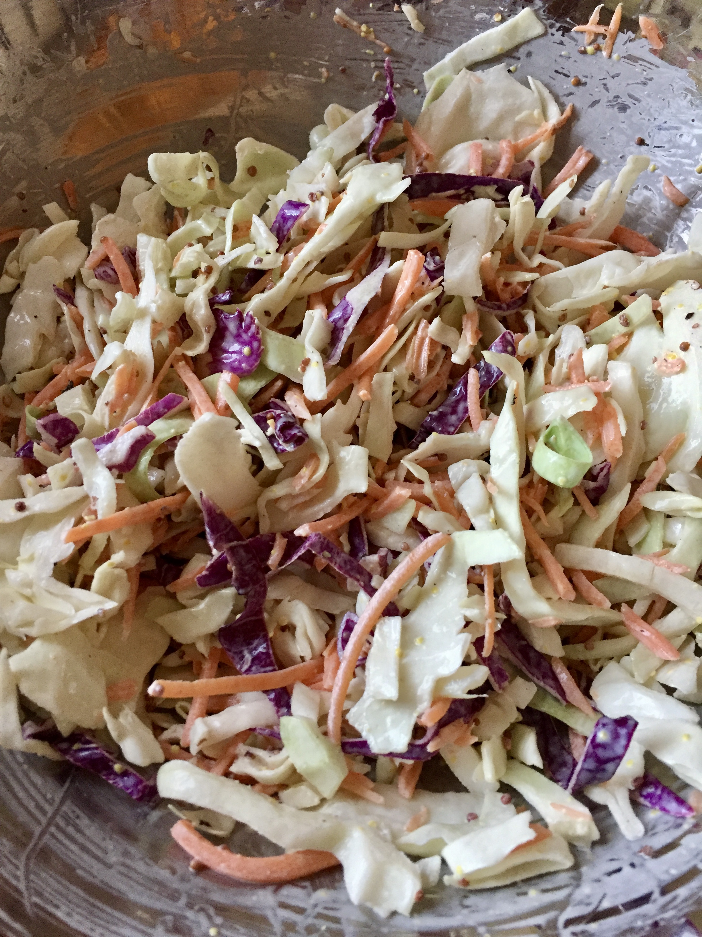 OPTIONAL: I usually take the coleslaw out of the fridge 15 minutes prior to serving in order to 1: give everything another good toss and 2: bring the coleslaw closer to room temperature.