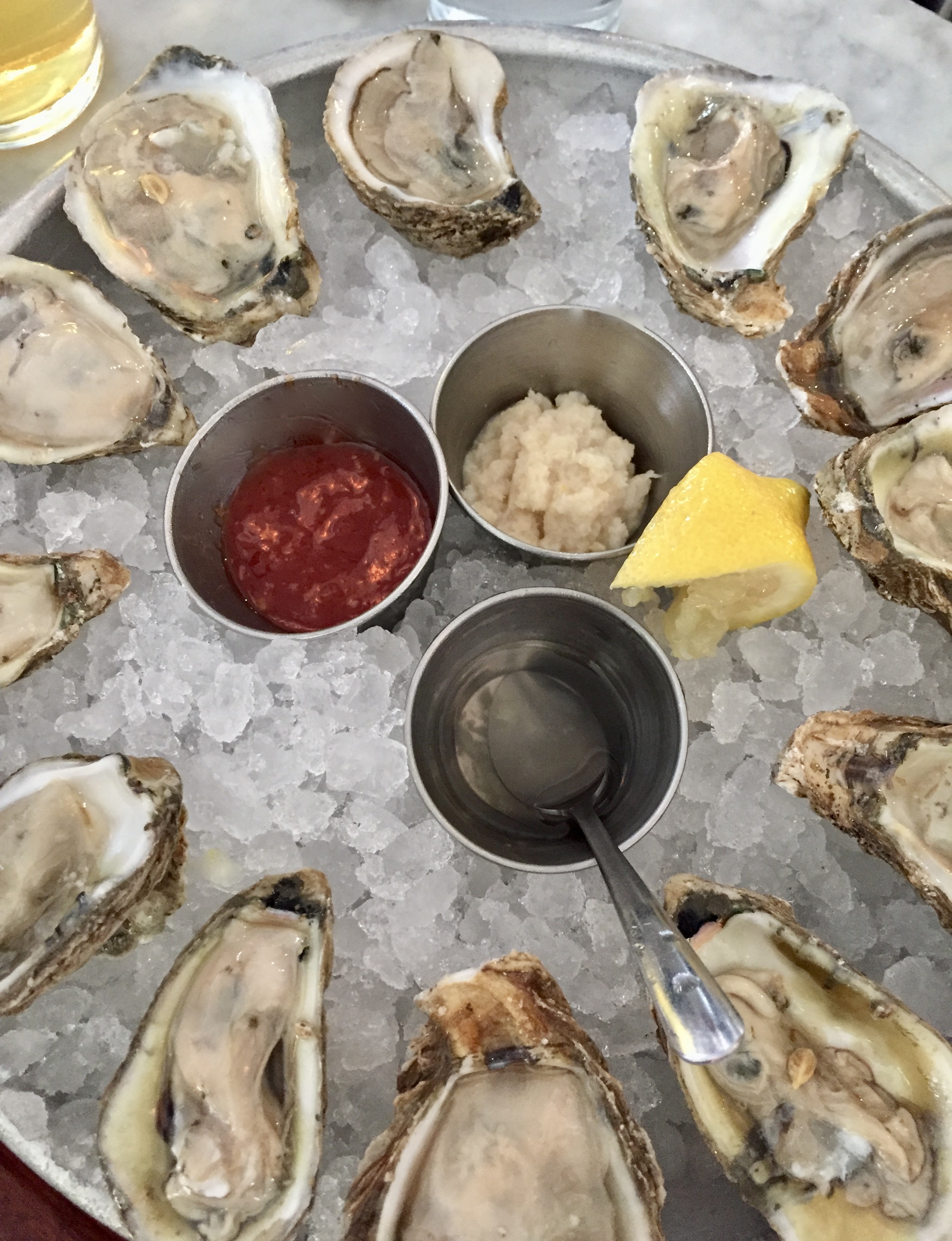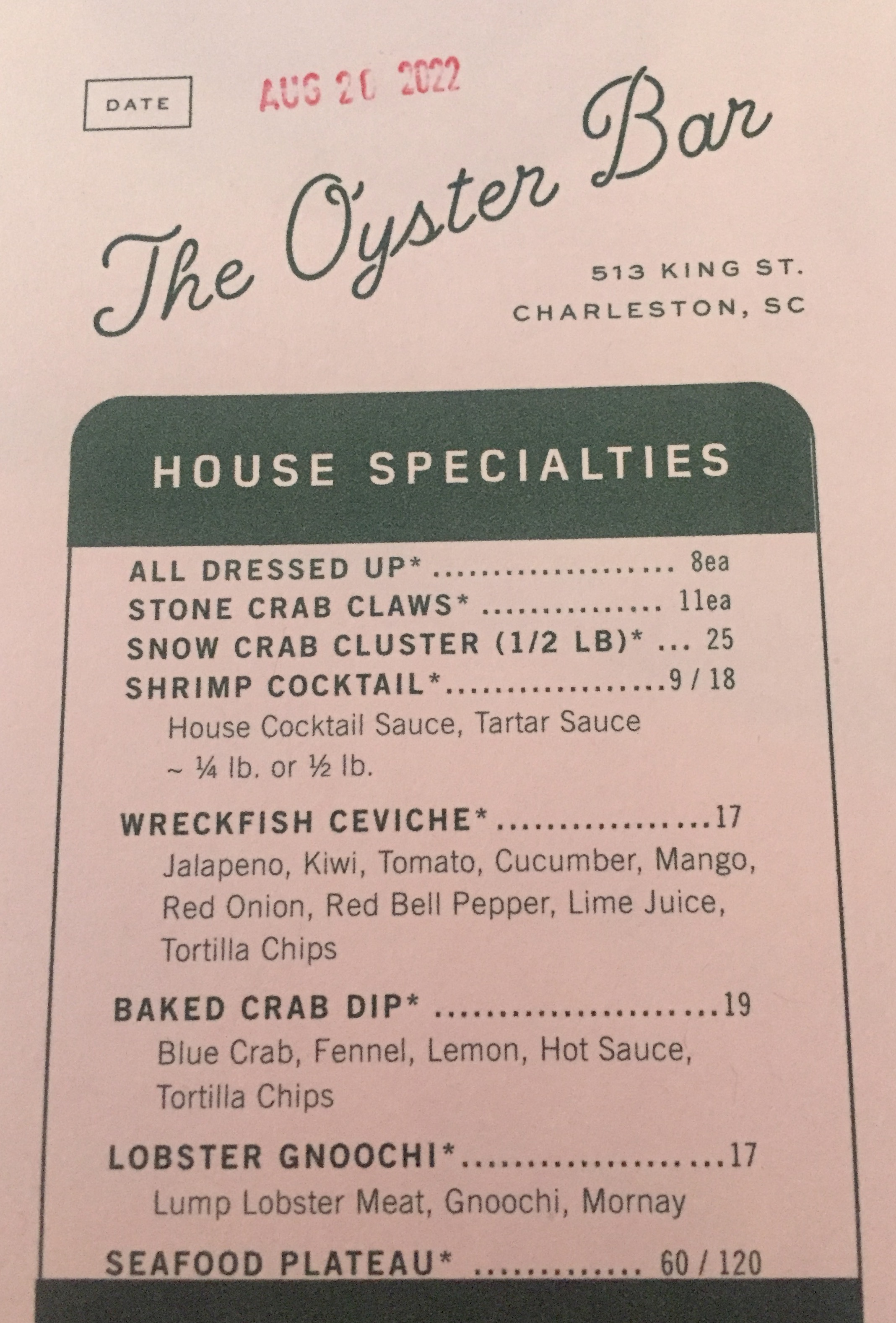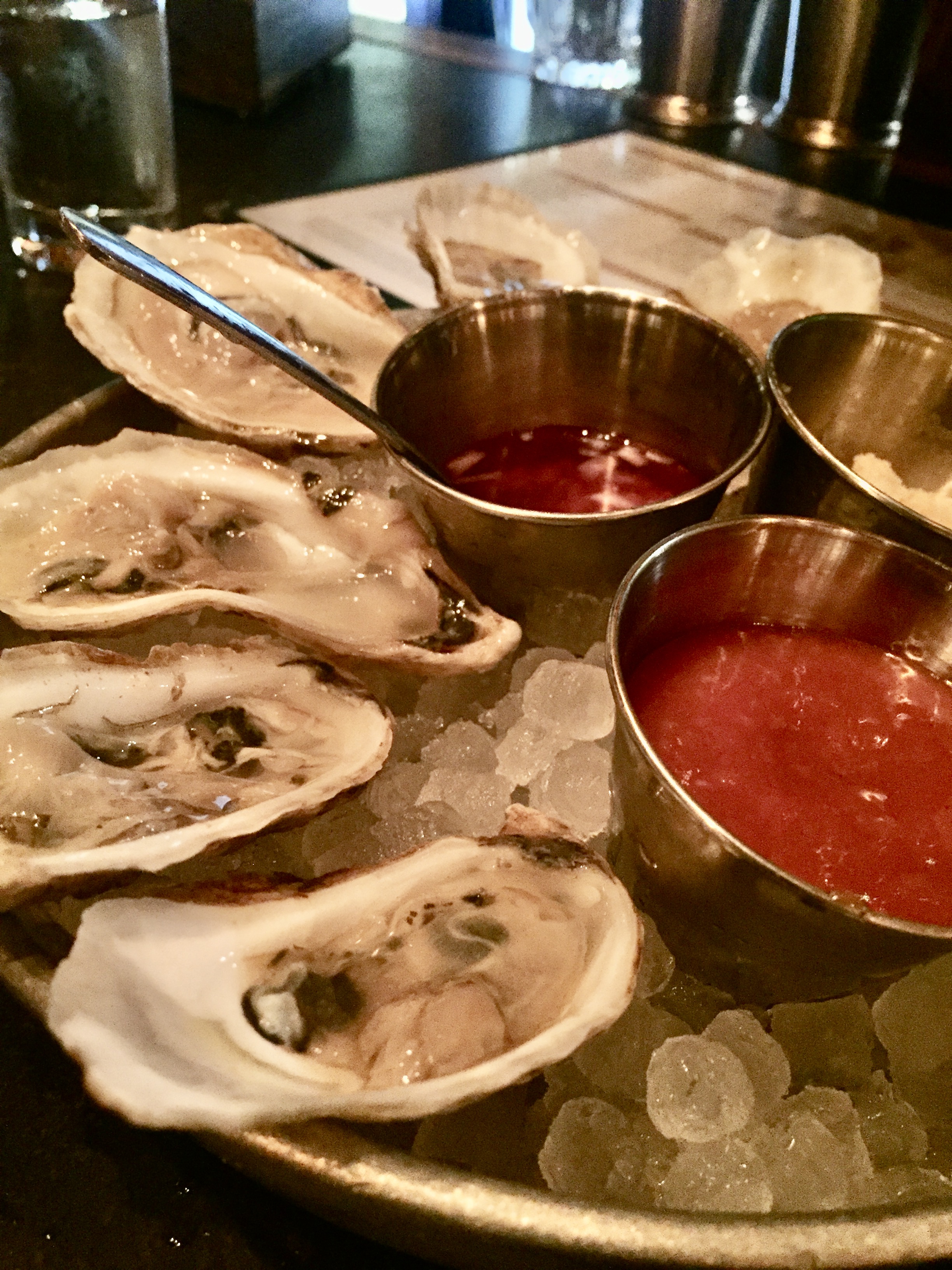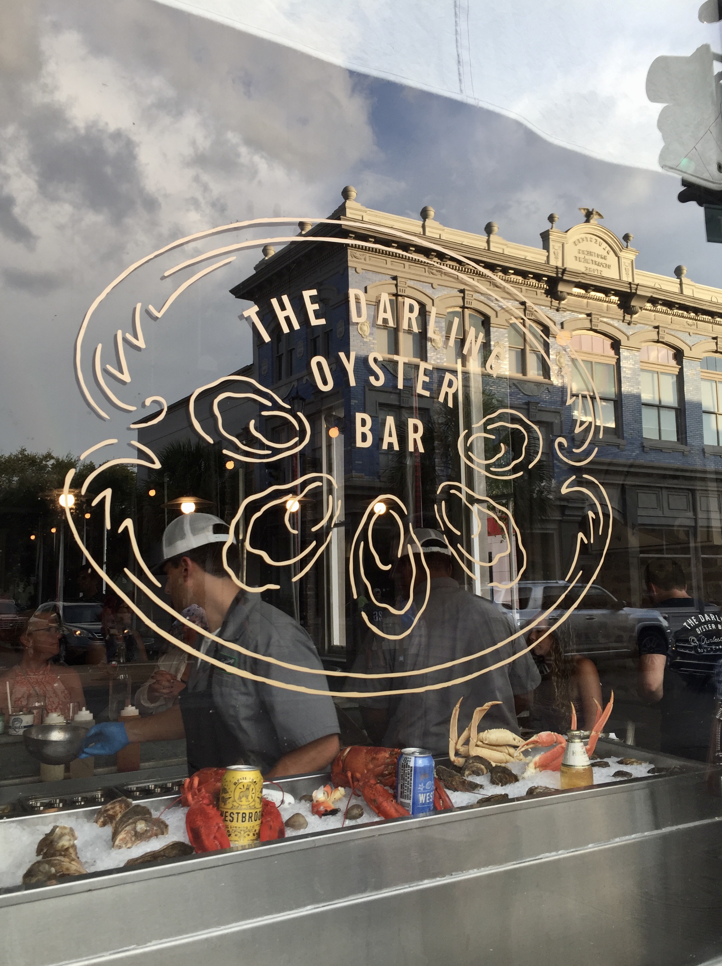 - The Darling Oyster Bar – Like any other type-A, oyster obsessed, deal-loving person – I researched Happy Hours prior to flying to South Carolina. We were arriving on a Saturday afternoon, and I was thrilled to learn that The Darling had Happy Hour the entire weekend – not just Sundays – which made it the perfect place to kick off our trip to Charleston! After settling into our hotel, we enjoyed our 15-minute walk over to all of the action on King Street. This chic looking restaurant was jam packed, but we snagged two-seats at the busy bar while deciding what to drink. After getting our beverages, we ordered a dozen oysters and their baked crab dip which was so good! The bartenders were all super sweet, and the vibe was so energetic that we were soon enjoying a second round of drinks and half a dozen more oysters with their signature hot sauce! Our time spent at The Darling Oyster Bar was honestly the perfect introduction to Charleston in my humble opinion – great food, great crowd, great ambiance! I highly recommend it.