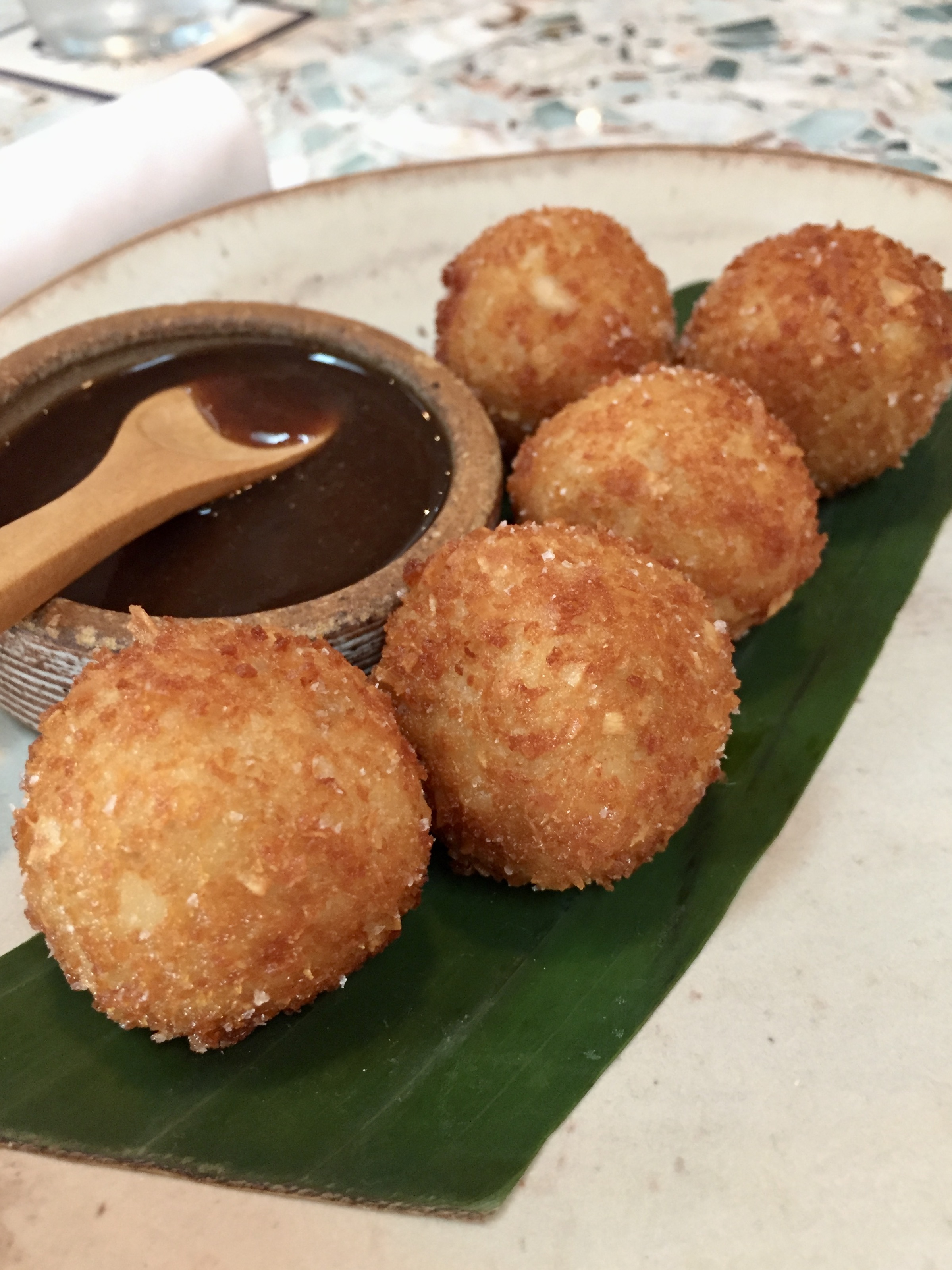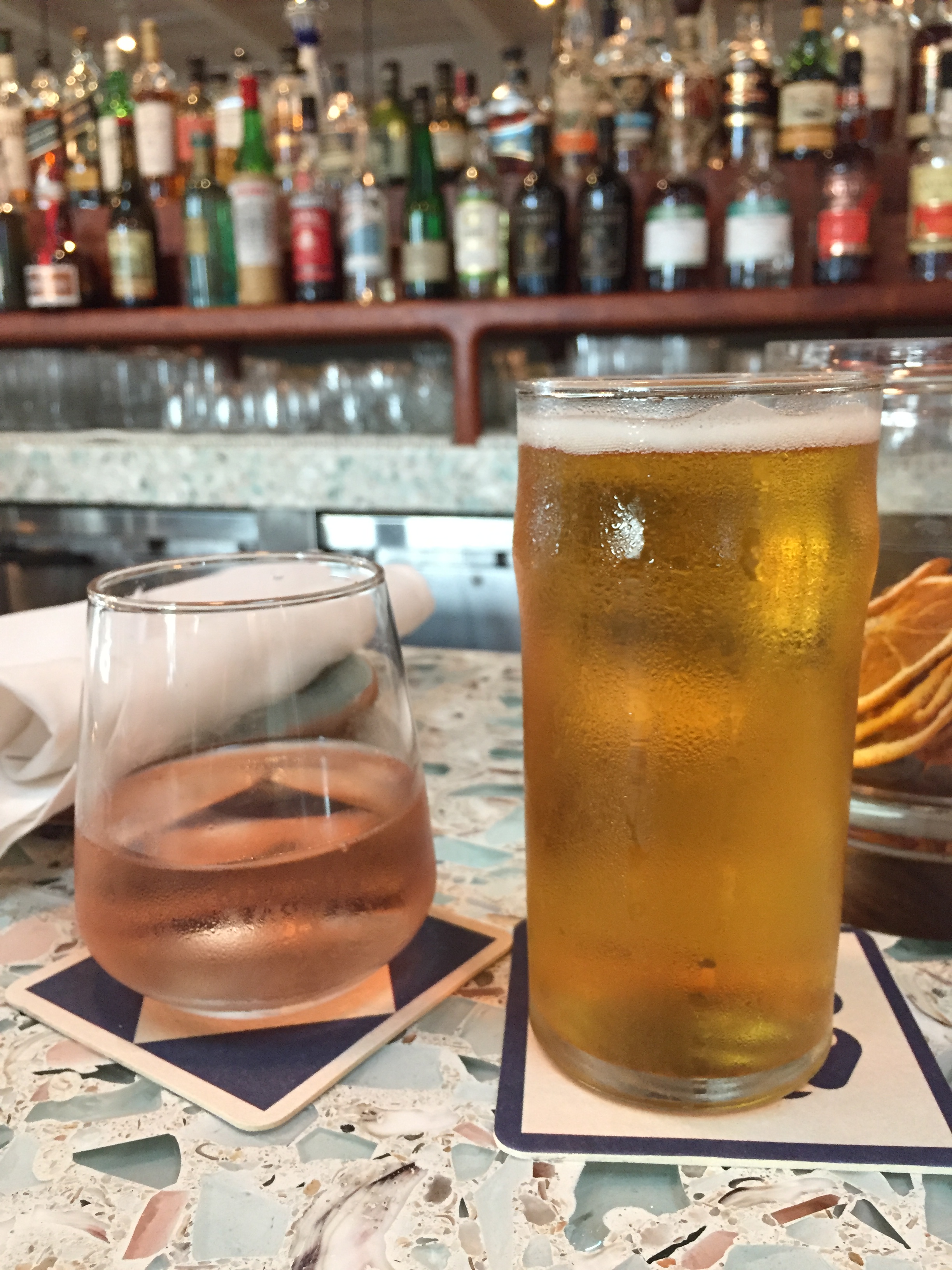 - The Longboard – During our second day in Charleston, I noticed an Oyster Hour sign while strolling along the main drag of Sullivan’s Island which of course motivated me to stop in for an afternoon snack and drink. The interior was light, bright, and colorful with a modern beachside flair. I couldn’t get enough of the sea glass countertops and other design features sprinkled throughout the restaurant. After grabbing a seat at the bar – we ordered a local beer, glass of rosé, and white fish croquettes. Our small meal was lovely, the service was great, and the ambiance was relaxing. We would have definitely tried some oysters and a few more items, but we didn’t want to eat too much prior to our dinner reservation at Nico later that night. If you ever find yourself exploring Sullivan’s Island, I would absolutely visit The Longboard.