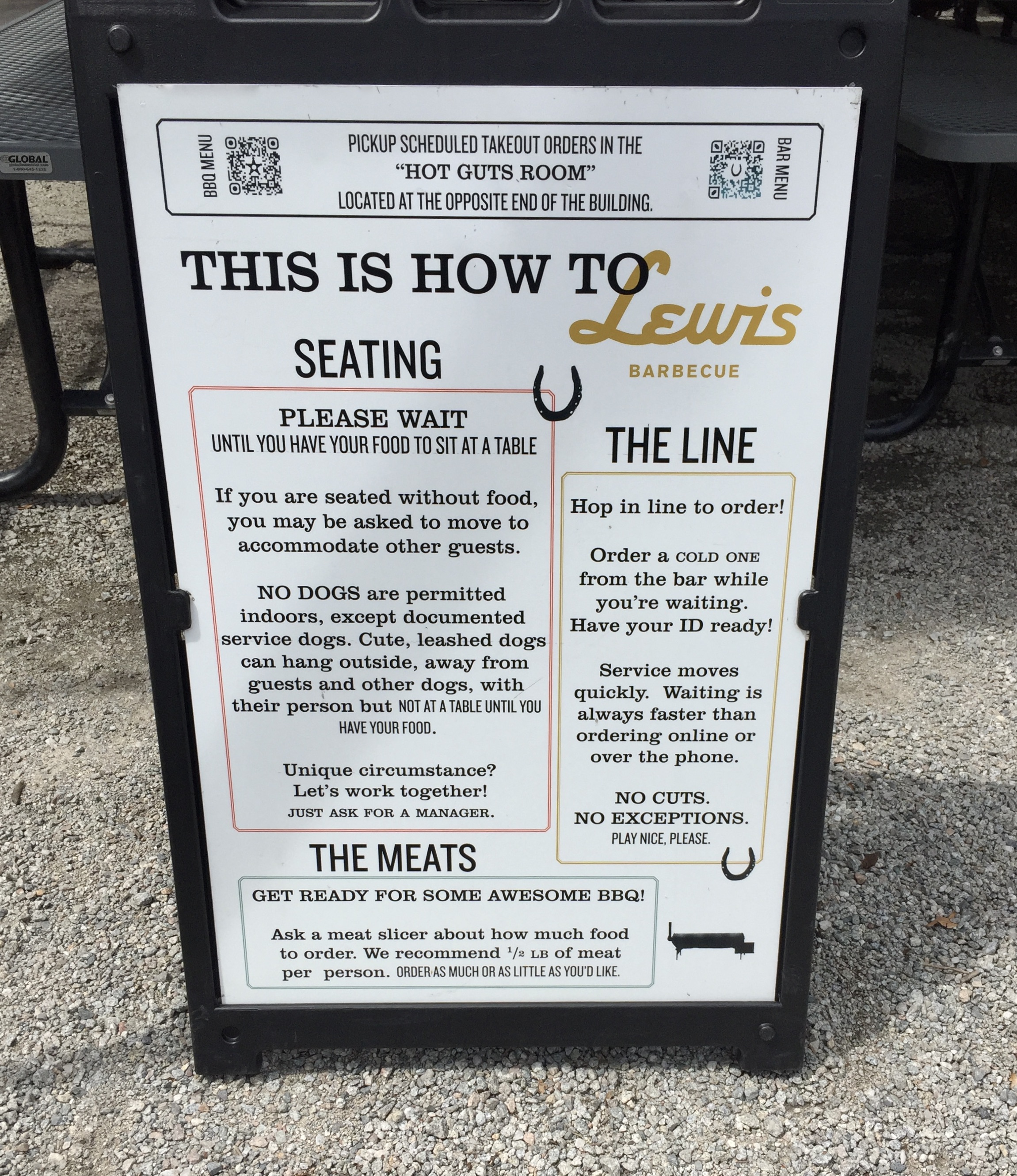 Lewis Barbecue > Outstanding Texas-style barbecue served with classic, southern sides