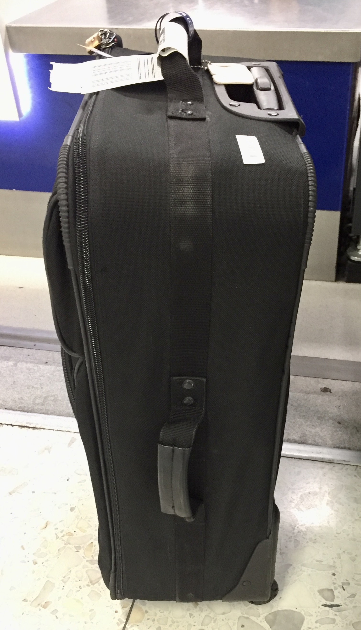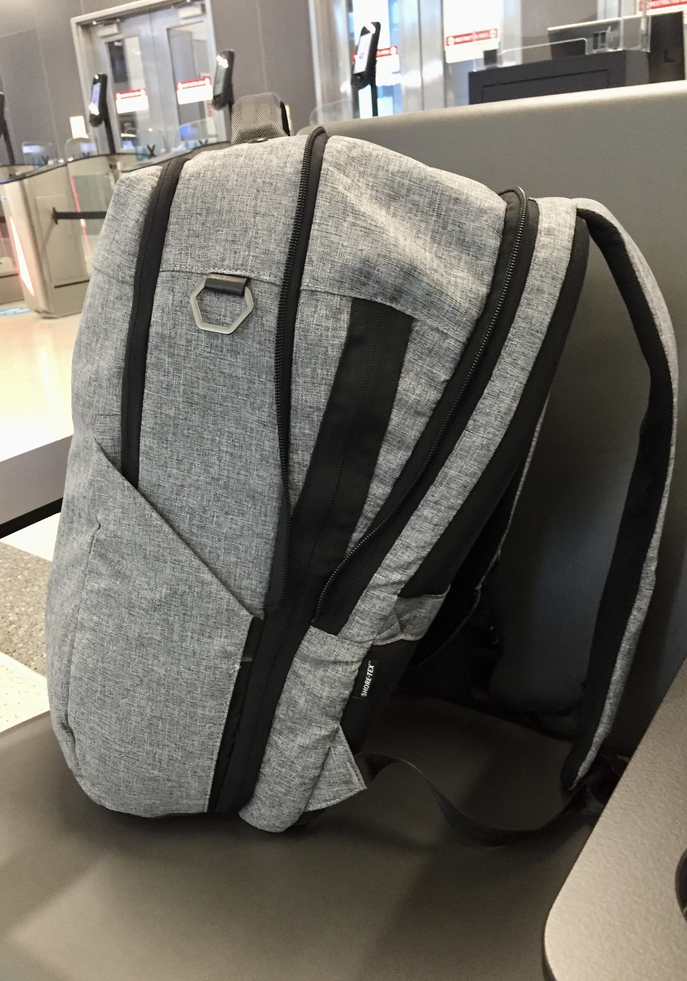 Yes – there is indeed a giant suitcase sitting underneath my gray backpack.