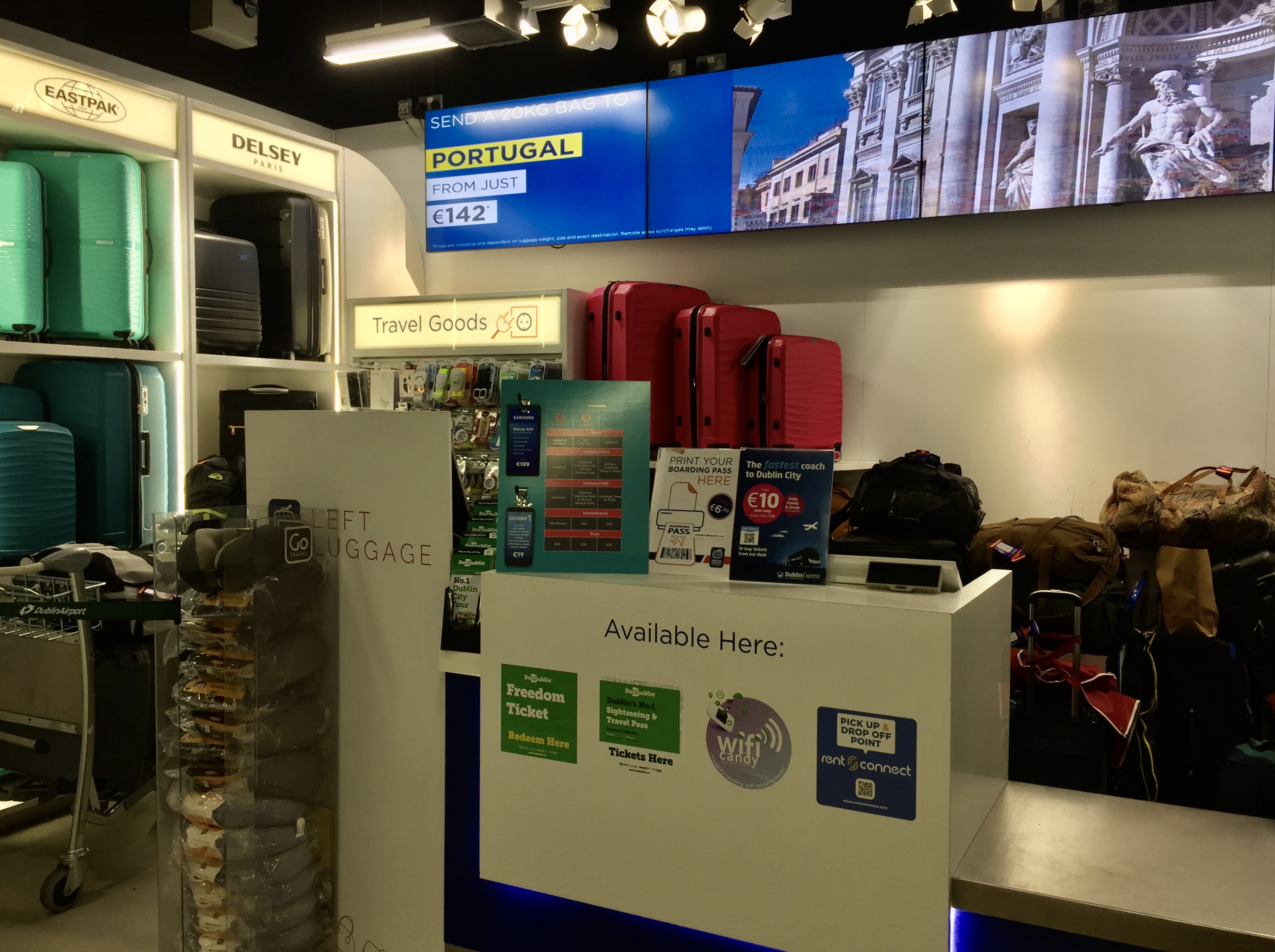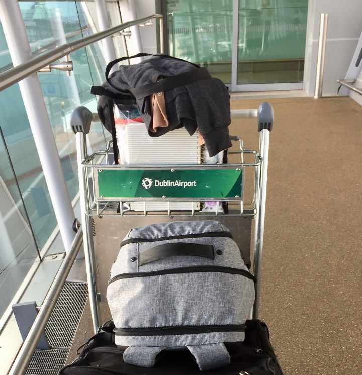 However – that suitcase is full of cold weather clothing, boots, an umbrella, and additional toiletries. I stored it at the “Left Luggage” desk of the Dublin International Airport within 30 minutes of landing in Europe as proven in the photos below 😉 I then flew to Portugal later that evening, and a friend picked up my suitcase from the airport the next day. She is so incredibly kind to hold my luggage for a whopping 3 months until I head back to Ireland on September 1st for a 5 week adventure. Until then though, my only bags are a small black purse, clear tote, and gray backpack!
